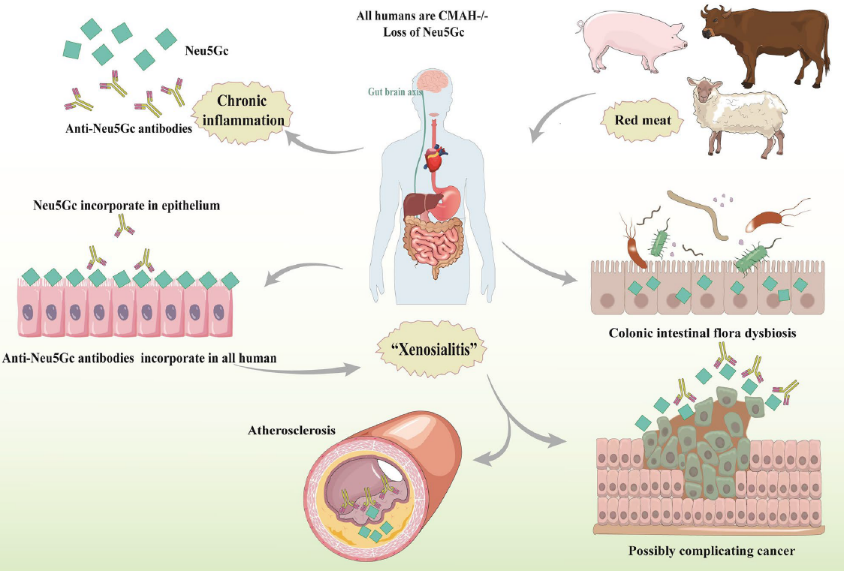图6与红肉衍生的非人类Neu5Gc代谢结合相关的潜在疾病风险