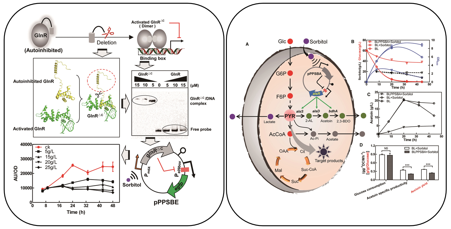 近期,PA视讯官方网站石贵阳教授团队在创新合成生物学调控方式相关研究中取得重要进展,成果“Design of a sorbitol-activated nitrogen metabolism-dependent regulatory system for redirection of carbon metabolism flow in Bacillus licheniformis ” 正式发表于Nucleic Acids Research(IF 14.9, https://doi.org/10.1093/nar/gkad859)。20级博士研究生何贺贺为文章第一作者。