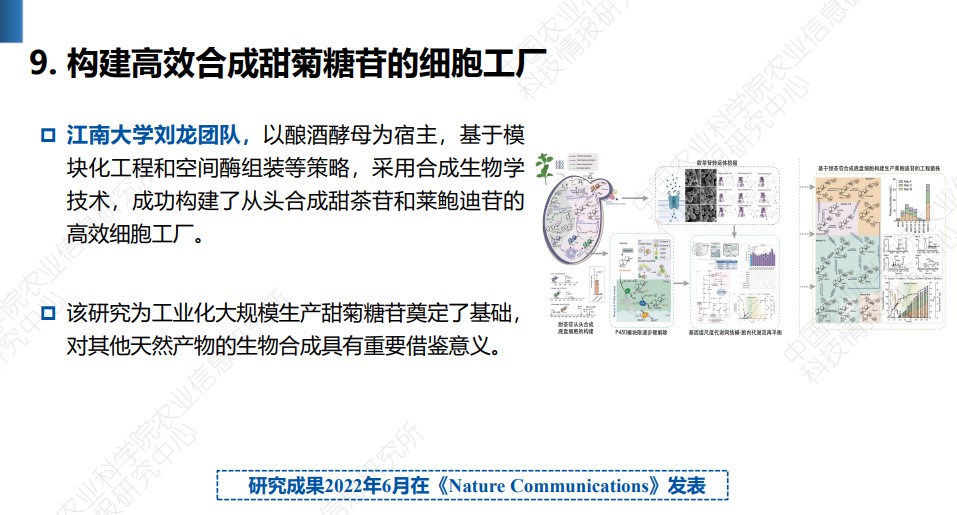 PA视讯官方网站PA视讯官方网站和未来食品科学中心陈坚院士团队刘龙教授课题组的研究成果“De novo biosynthesis of rubusoside and rebaudiosides in engineered yeasts”(于2022年6月发表于《Nature Communications》,第一作者为2019级博士生徐雅梦,刘龙教授为通讯作者)成功入选。