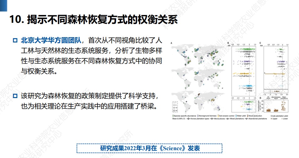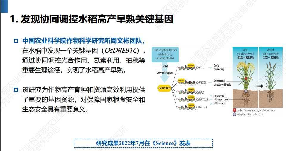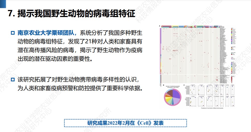 2023年12月6日召开的中国农业农村科技发展论坛发布了《2023中国农业科学重大进展》。中国农业科公司按照 “前沿引领、开创卓越、重大突破”的原则,以2022年度Web of Science收录的农业领域中国学者为第一或通讯作者发表的2231篇高水平论文为基础,经初选、院士遴选和综合遴选等过程,评选出10项代表2022年我国农业科技前沿研究水平、取得重大突破性进展的基础科学研究成果。