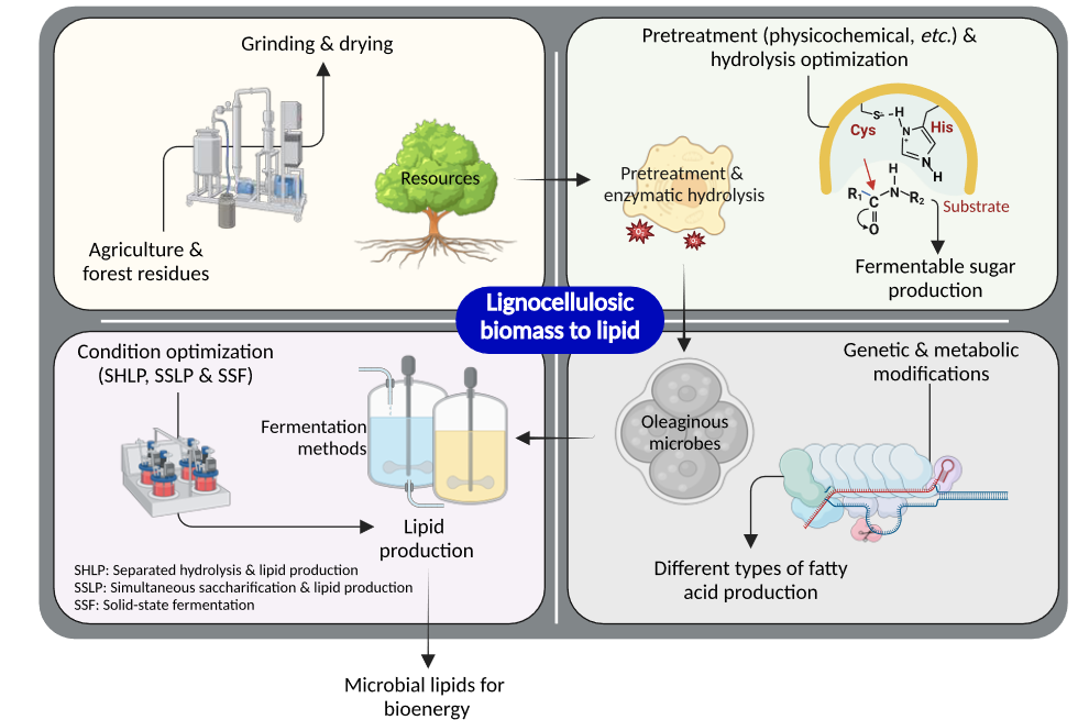 近期,公司PA视讯官方网站生物资源与生物炼制研究团队对木质纤维素生物质糖发酵微生物油脂的研究进展进行了系统综述,以“New trends in microbial lipid-based biorefinery for fermentative bioenergy production from lignocellulosic biomass”为题正式发表于Biofuel Research Journal, 2024, 11: 2040-2064 (Q1, IF 12.99)