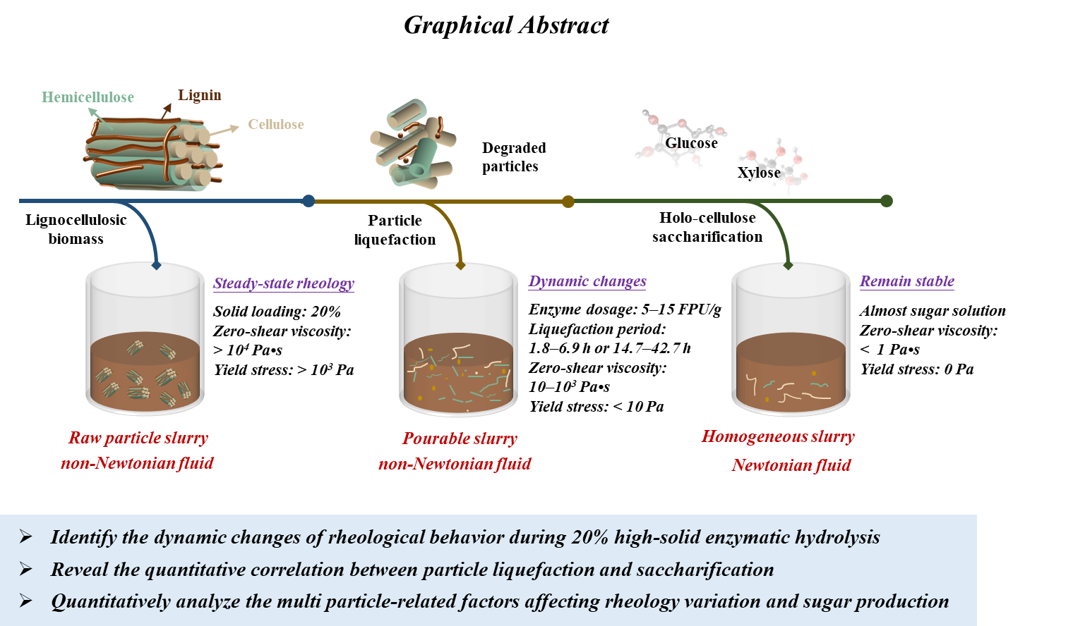 近期,公司PA视讯官方网站孙付保教授团队在木质纤维素生物质浓醪酶解糖化方面取得重要进展,研究成果“Quantitative correlation analysis between particle liquefaction and saccharification through dynamic changes of slurry rheological behavior and particle characteristics during high-solid enzymatic hydrolysis of sugarcane bagasse”正式发表于Bioresource Technology (IF =/info/1021/ /11.3997) (https://doi.org/10.1016/j.biortech.2024.130518)。