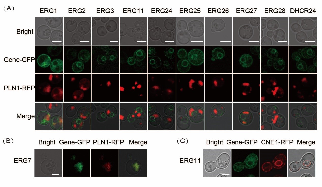 维生素D3(VD3)是一种维持人体健康所必需的类固醇化合物,广泛应用于医药、食品和饲料等行业。前体化合物7-脱氢胆固醇(7-DHC)经光转化后可以直接合成VD3。目前7-DHC的制备方法主要包括化学合成法和微生物发酵法,相较于化学合成法,微生物发酵法因具有环境友好、生产过程安全易控制等优势,受到研究者的广泛关注。但是,合成7-DHC的前体物质主要为固醇和萜类化合物,它们在胞内的大量累积易对细胞产生毒性,为避免或减弱这种毒害作用,细胞往往会将这些固醇和萜类化合物封存于某些具膜细胞器中。然而,这种封存会在空间上将前体物质与下游合成途径中的酶进行隔离,从而限制了目标产物的高效合成。