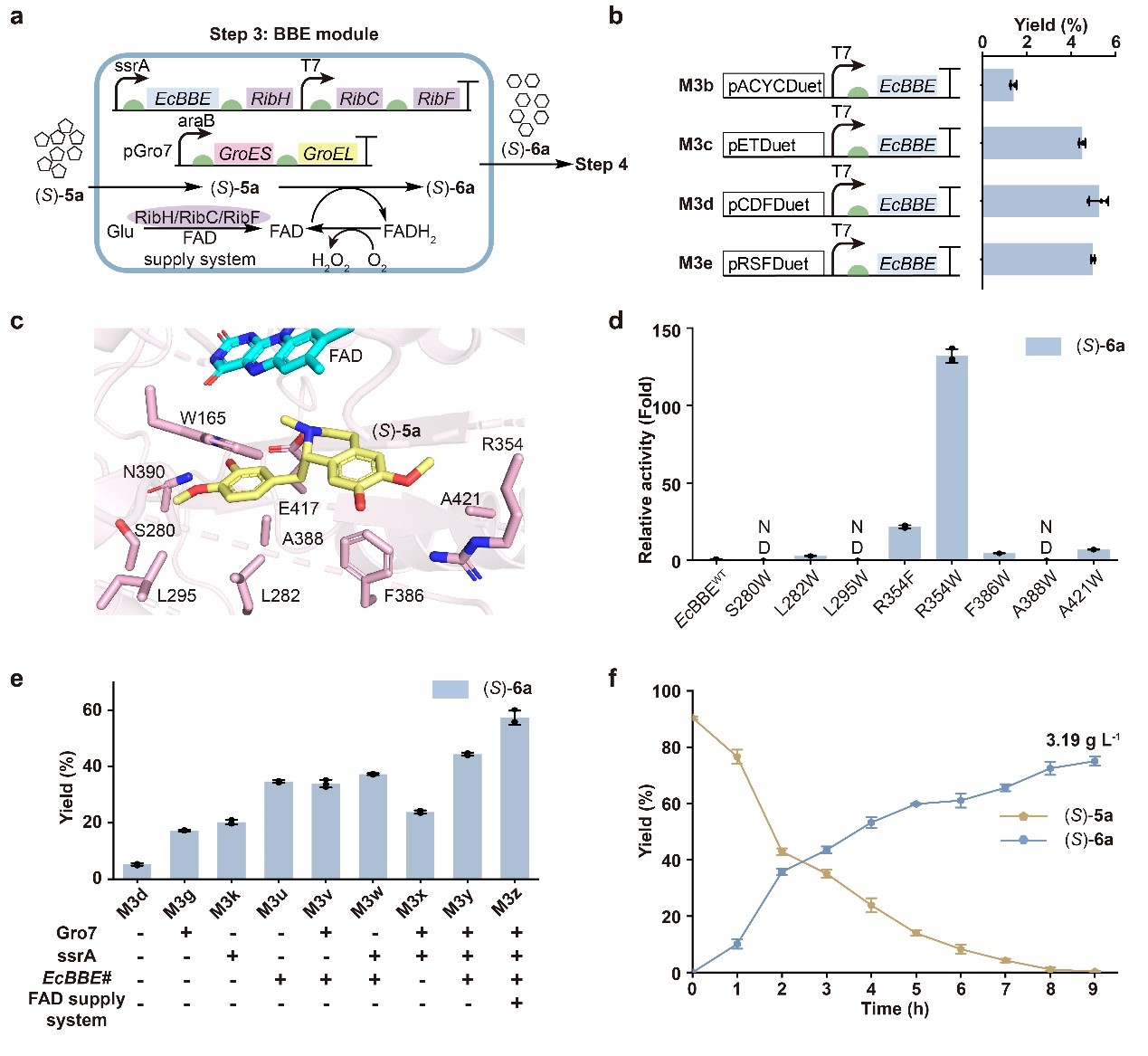 图4 生物合成(S)-6a的BBE模块的构建与优化
