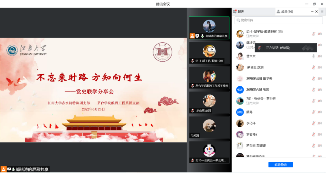 在“七一”来临之际,6月26日晚,PA视讯官方网站酿酒1901班“赤水河”特称团支部联合茅台公司酿酒工程系员工,开展“不忘来时路,方知向何生”党史联学分享会,7名同学“云端”进行学习分享,两校近百名酿酒学子线上参与活动。