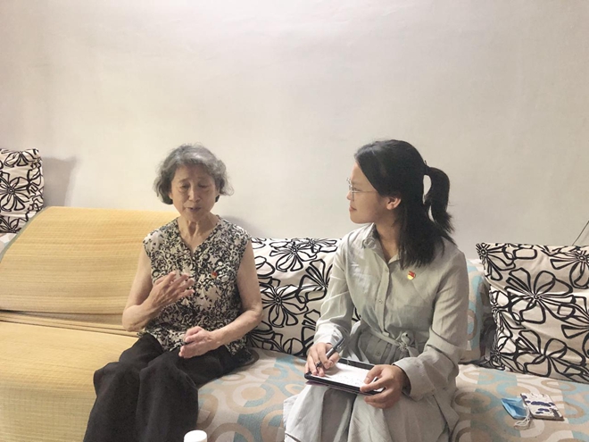 【嘉兴日报-嘉兴在线9月2日】致敬先锋,传承红色基因;追寻足迹,了解身边历史故事。今天上午,秀洲区新城街道春晓社区开展了一场别开生面的暑期实践活动。来自江南老员工物工程专业的大三员工韩孟希,来到春晓社区王存美的家中,采访了这位党龄超过60年的老党员。