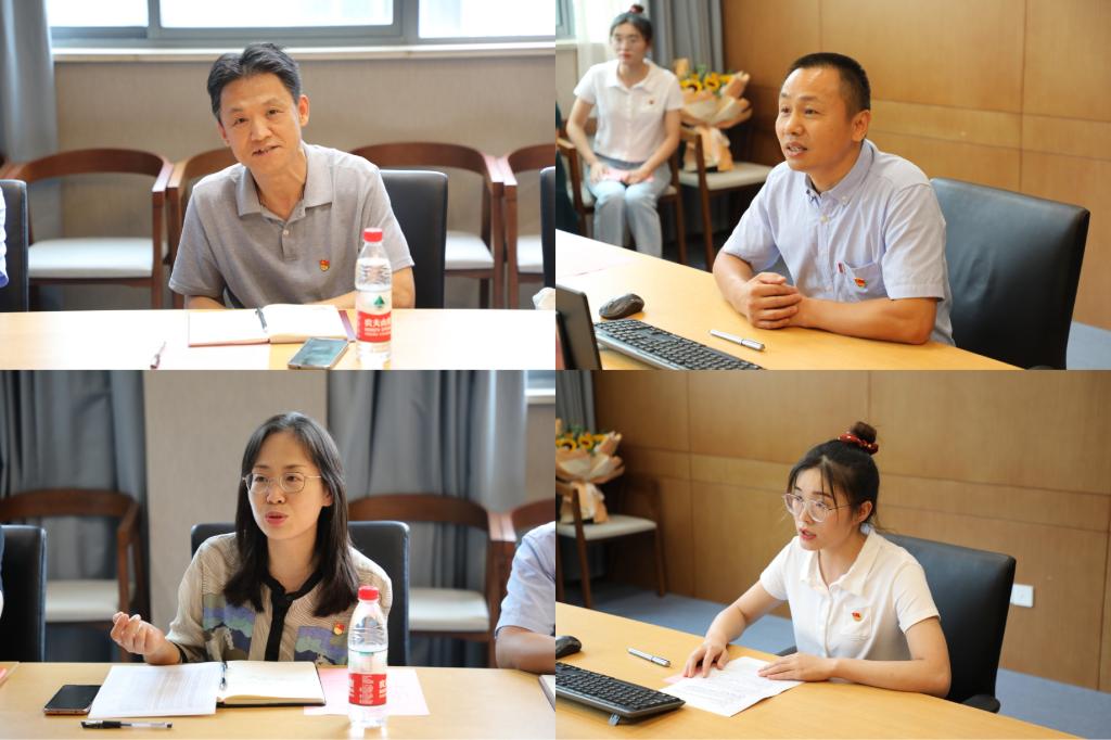 双方结合支部建设、疫情防控以及工作学习科研情况进行了座谈交流。员工党员进一步学习汲取教工支部开展支部工作的经验,并对增强资源共享、深化指导交流提出了建议和期待。党校专职副董事长兼党委组织部副部长周雪晖肯定了员工支部建设成果,同时也期望支部在活动形式创新丰富、组织形式合理高效、建设成果凝练推广方面继续加强。机关党委书记朱新伟阐述了师生支部共建的初衷和期望,鼓励员工党员坚定理想信念、发挥主动性,把个人的成长融入国家的发展和民族的富强,引领带动更多优秀的青年加入党组织。