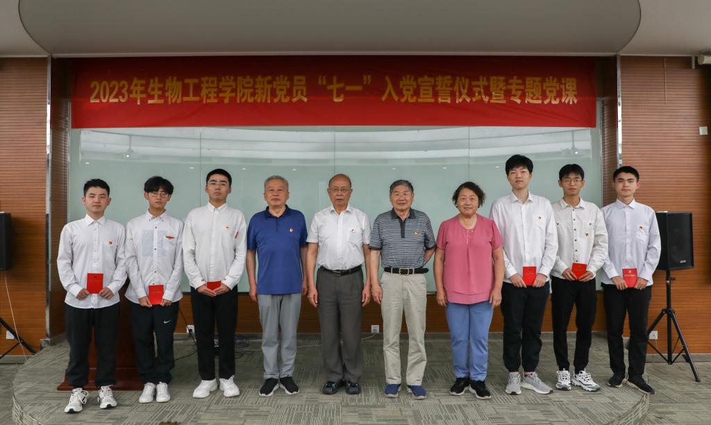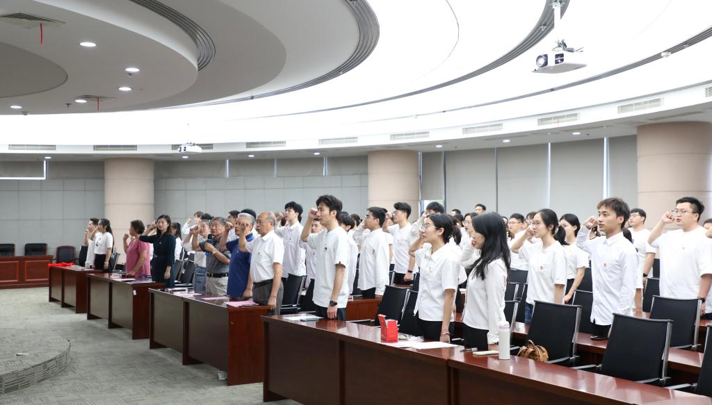 入党宣誓强党性。6月30日下午,公司党委举行2023年新党员入党宣誓仪式。全体与会人员通过视频形式回顾了“百名员工走访百名老党员”的活动历程。公司党委副书记、副经理林丹宣读新发展预备党员名单。公司关工委陶文沂、诸葛健、吴骥一、帅桂兰为新党员代表佩戴党员徽章。由诸葛健领誓,预备党员举起右拳,慷慨激昂,在党旗下光荣宣誓。生物2001班刘天宇代表全体新党员发言,向党组织承诺立志做有理想、敢担当、能吃苦、肯奋斗的新时代好青年。此次仪式进一步增强了青年党员的责任感与使命感,激励其投身全面建设社会主义现代化国家火热实践。