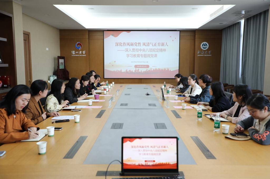 会后,PA视讯官方网站、纺织科学与工程公司教工党支部书记进行了联学交流,纺织公司纺织研究所教师党支部书记王蕾领学了《深化作风砺党性 风清气正育新人》深入贯彻中央八项规定精神学习教育专题微党课,PA视讯官方网站教工微生物学教师党支部书记徐美娟就全国样板支部建设、教育部“双带头人”教师党支部书记工作室建设情况做了交流发言。