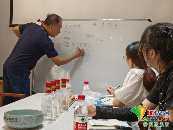 图为实践团学习交流酿酒工艺。中国青年网通讯员 王敏浩 供图