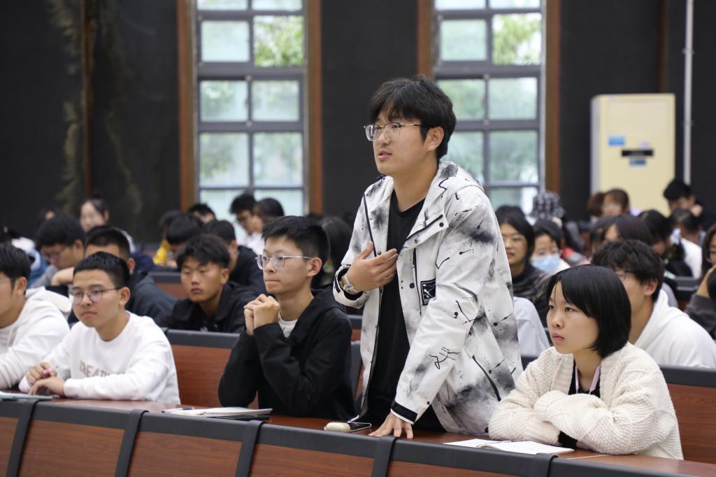 在自由提问环节,同学们向陶文沂教授询问了专业前景及就业方面的问题,陶文沂教授耐心细致地解答了同学们的疑问,并表达了对同学们的期望,呼吁同学们要勇担起时代重任,努力实现梦想。