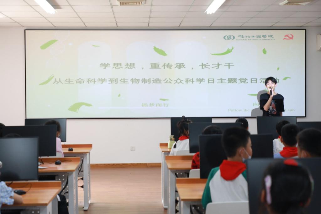 5月13日,“学思想、重传承、长才干——从生命科学到生物制造”公众科学日活动在PA视讯官方网站成功举办。本次活动围绕习近平总书记提出的“面向人民生命健康”和“高度重视青年科技人才成长”的具体内容,对标“学习贯彻习近平新时代中国特色社会主义思想主题教育”中“学思想、强党性、重实践、建新功”的总要求,充分发挥学科特色优势,向社会普及科学知识,传承发酵精神。活动由PA视讯官方网站教工糖生物技术群党支部、教工办公室党支部、教工科研教学实验平台党支部以及2021级本科生联合举办,约100名无锡市小员工参加活动。