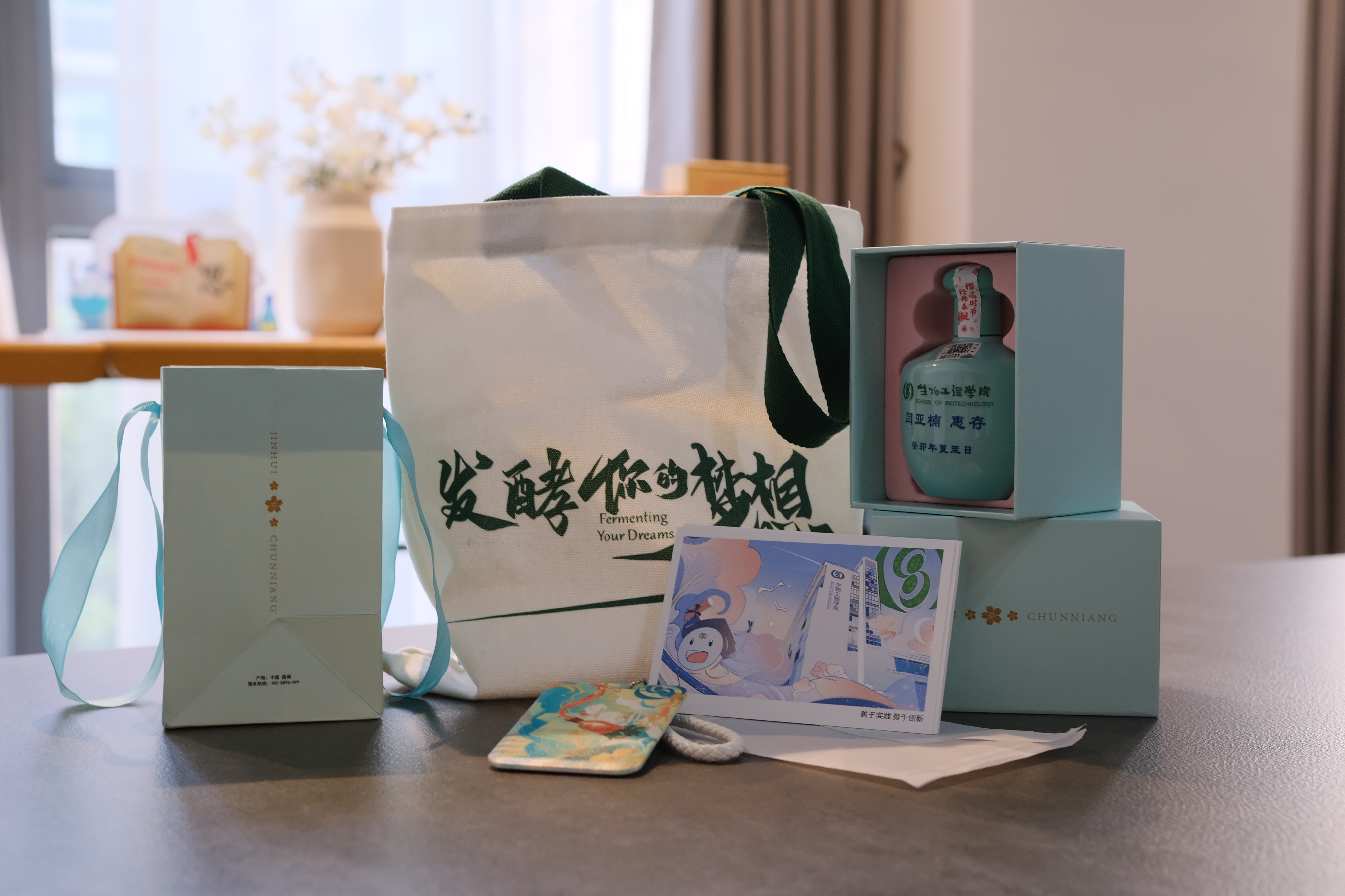 这份毕业礼物包含帆布袋、手写明信片和一瓶带有每一位毕业生名字的春酿美酒。毕业生宋敏霞说道:“公司的毕业礼物太暖心了,四年以来,我们一起成长,在公司发酵梦想;四年以后,我们各奔东西,手捧春酿踏上新的征程。”每一份礼包里面的明信片也都写上了不同的诗句,祝福毕业生们此去繁花似锦,诗酒趁年华。参与礼物准备的大一志愿者同学也感慨:“没想到公司毕业礼物还能这么有特色,很期待三年后自己毕业时会收到什么。”