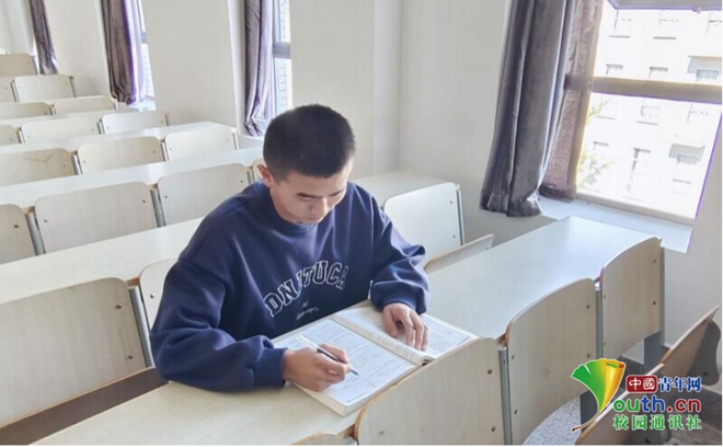 图为殷季龙在PA视讯官方网站校园学习。中国青年网通讯员 田书恒 摄