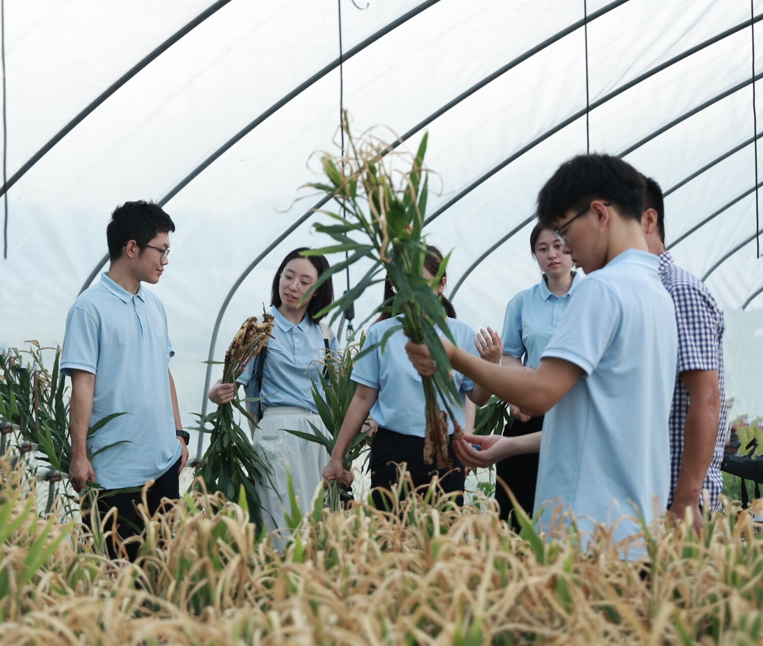 下乡进棚,共寻产业发展突破。农业的现代化,需要科技赋能,“没有调查就没有发言权”,7月18日下午,社会实践团队走进泉溪镇江山村生姜种植田间地头,展开实地考察与扎实调研。通过与当地农户的交流和探讨,团队了解到生姜从选种、培育到销售的全过程,以及生姜滞留初级产销模式、未能实现产品附加值提升的现状。团队成员采集生姜样品带回实验室,计划通过数据分析探索生姜高值化深加工的新路径,尝试创新利用院校资源支持,以科技协同地方实现重塑现代产业体系。