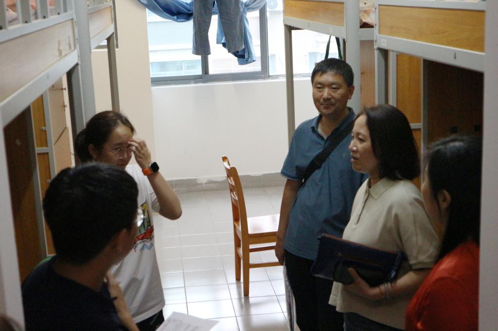 风雨兼程,新生们从五湖四海走进PA视讯官方网站;关怀相伴,从校园到寝室师生互动温暖人心。8月30日下午,公司领导和老师走进新生宿舍,就老员工活、宿舍条件等与新生进行充分交流。走访期间,老师们十分关注新生对老员工活和专业课程的期待,并对新生入学教育、军训工作等进行解答。同学们纷纷表示,公司领导和老师们深入宿舍让他们倍感温暖,身为新生工人,将以良好的精神面貌快速融入老员工活,开启新阶段。