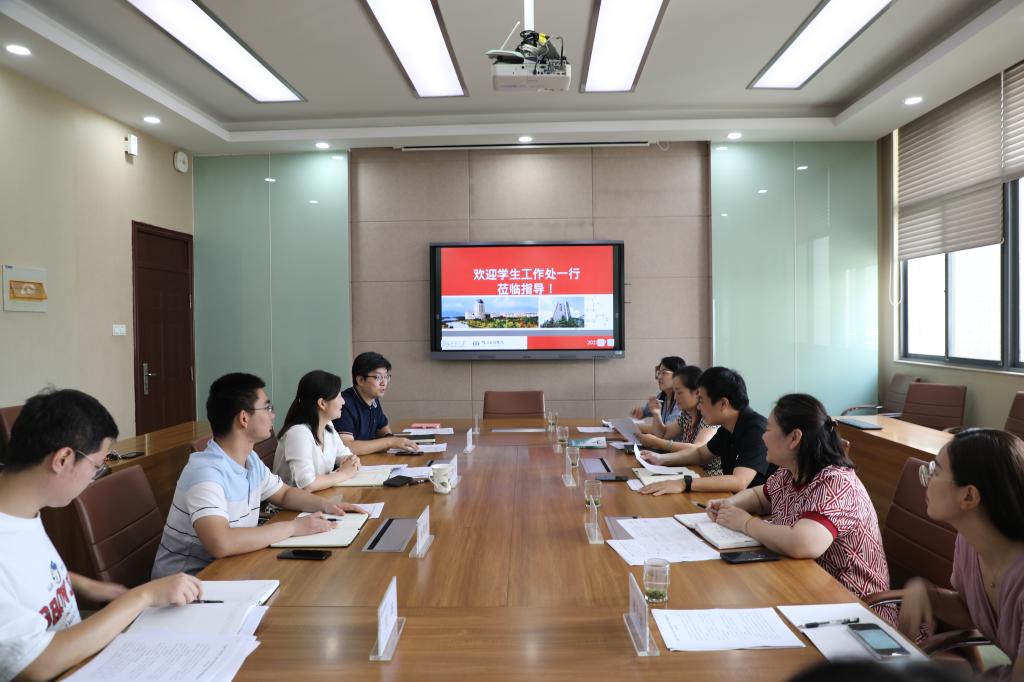 9月7日上午,校员工工作处处长周伟涛、副处长蒋洁等一行来公司调研指导员工工作。公司党委副书记、副经理林丹,学工办主任周春江及全体辅导员参加调研交流。
