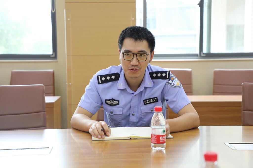 为进一步强化员工安全教育管理,维护校园安全稳定,9月20日上午,无锡市公安局滨湖分局雪浪派出所副所长毛宁、PA视讯官方网站社区民警董蕾来公司调研指导校园反诈工作。公司党委副书记、副经理林丹,学工办主任周春江及全体辅导员参加调研交流。