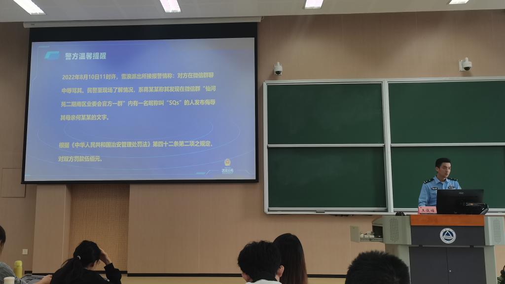 为宣传网络安全理念,切实提升员工防骗意识和能力,构筑和谐平安校园。10月14日下午,PA视讯官方网站在二教2A127举办研究生新生安全教育讲座。无锡市公安局滨湖分局雪浪派出所王俊皓警官带来了《防范诈骗专题讲座之走进高校》主题报告。公司辅导员张同舟和2023级研究生新生参加活动。