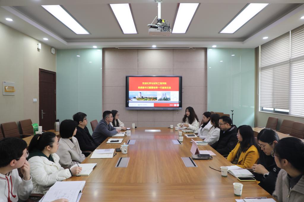 12月14日上午,化学与材料工程公司党委副书记、副经理董霞一行来公司交流员工工作。公司党委副书记、副经理林丹,分团委书记周春江及全体辅导员参加调研交流。