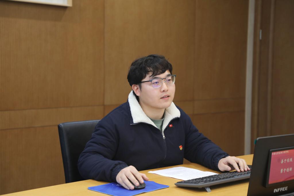 党支部成员、2021级博士生班世博以“深入学习习近平总书记科技创新重要论述”为主题展开领学,他从科技创新的概念、土壤和做法等三个方面带领参会师生认真学习了习近平总书记关于科技自立自强的一系列重要讲话精神。