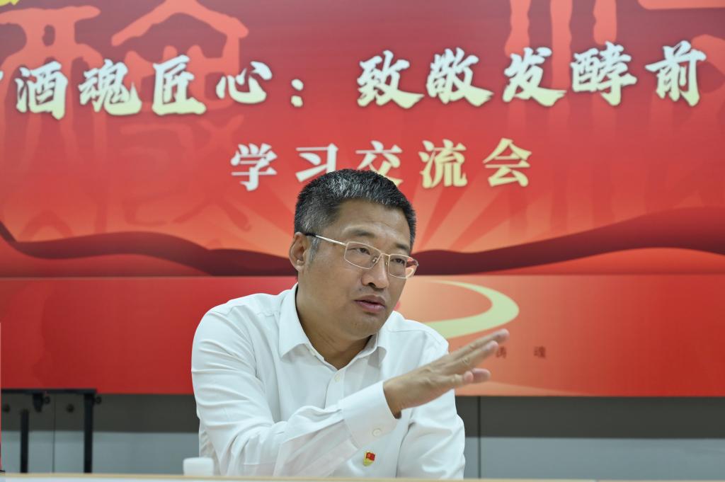 交流会上,陈卫认真听取同学们的分享后,对本次活动作出了点评讲话,对交流会的主题设置、场地安排、分享形式和内容表示肯定。同时,他结合科技自立自强、传承发酵精神,为全体参会成员上了一堂生动的党课。首先,从出席杰出员工季克良从业六十年学术研讨会讲起,他谈及季老“择一事 忠一生”的专注与坚守值得同学们学习,新青年应当具备传承前辈们奉献和敬业精神的时代担当;其次,他提到青年科技人才处于创新创造力的高峰期,是国家战略人才力量的重要组成部分,新青年应当立足科技前沿,为加快实现高水平科技自立自强注入青春力量;最后,他强调学科文化和红色基因是重要的精神内核,新青年应当依托优势平台资源、团队力量,用实际行动为团队建设、公司发展、国家繁荣添砖加瓦、贡献力量。