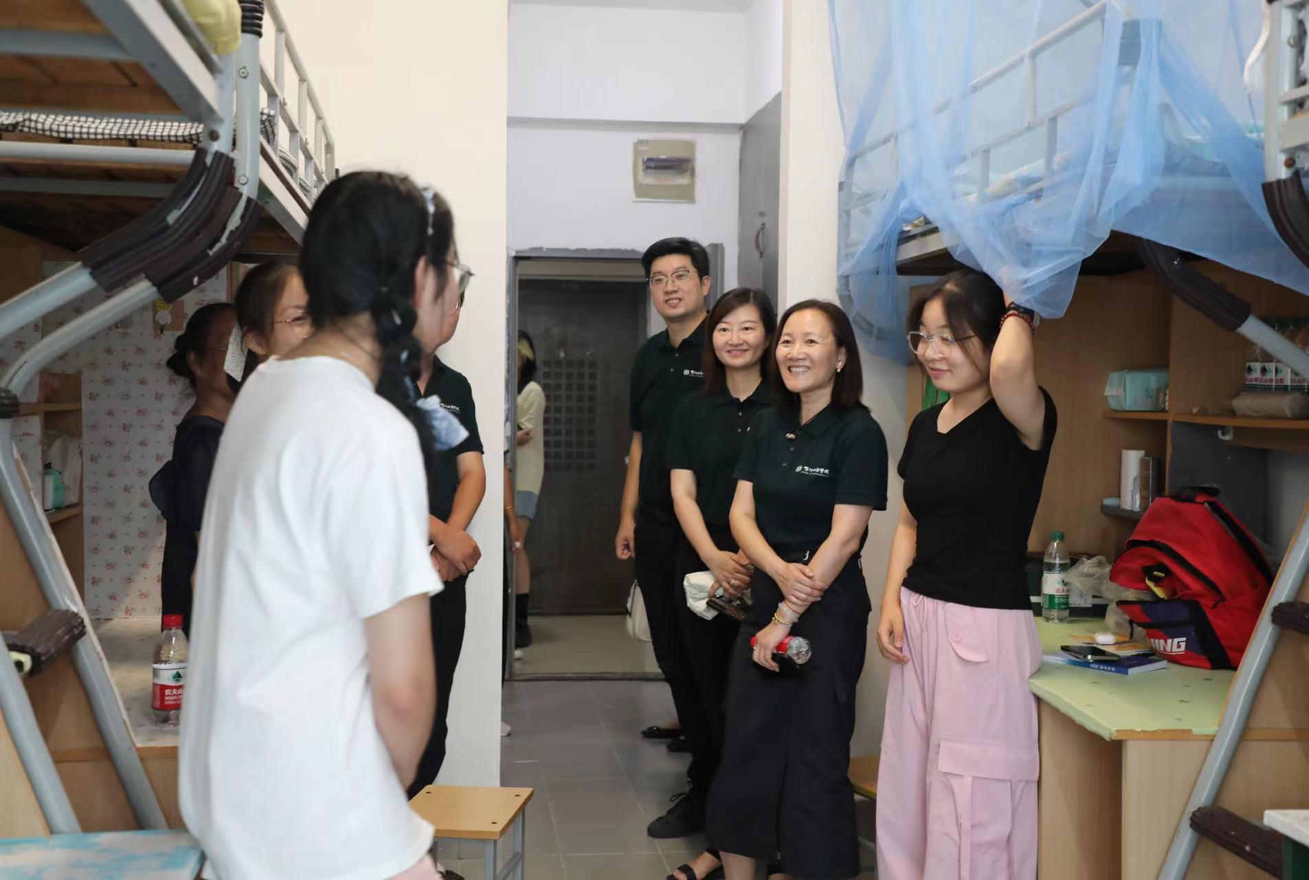 暖“新”关怀,温情系师生。为深入了解2024级新生入学情况,倾听他们的心声,帮助其营造良好的生活与学习环境。8月23日下午,公司领导和老师走进新生宿舍,与同学们进行了面对面的交流,关心同学们的生活起居和专业学习期待,并就新生入学教育、军训安排、宿舍安全、反诈防骗等进行了解答和提示。同学们纷纷表示深切感受到了公司对同学们无微不至的关心与关爱,面对即将展开的老员工活,将以昂扬的精神面貌积极融入新环境、拥抱新梦想、投身新征程。