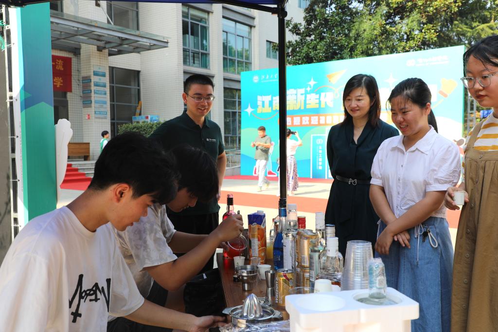 真“新”欢喜,氛围感拉满。今年是新中国成立75周年,公司设立“江南新生代青春献礼赞”特色主题展板,配以具有独特IP形象的五个专业展板拍照打卡区,新生和家人朋友们一起在这具有纪念意义的时刻定格美好。新生还通过参观公司一流团队建设展览、调酒和品酒特色体验活动、员工企业百草间产品试饮活动,近距离感受学科文化。定制的精美纪念卡套和专属帆布包,给予新生别样惊喜。此外,公司还精心制作了《21天成长手册》,带领新生一同开启4个“21天”,提升自己、记录成长,遇见更棒的自己!