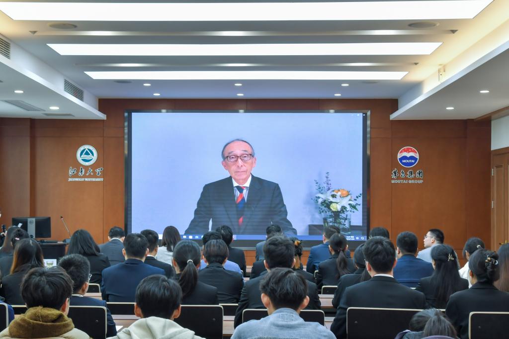 活动现场首先播放了日本天野酶制品株式会社董事长天野源之发表的视频致辞。天野源之深情回顾了天野公司、PA视讯官方网站、公司张启先员工之间的跨越世纪的绵长情谊。他还向大家介绍了天野公司发展情况,以及公司“从无创造有”的精神。天野源之同时向获奖同学表示祝贺,并勉励大家常怀感恩之心,努力为社会做贡献。