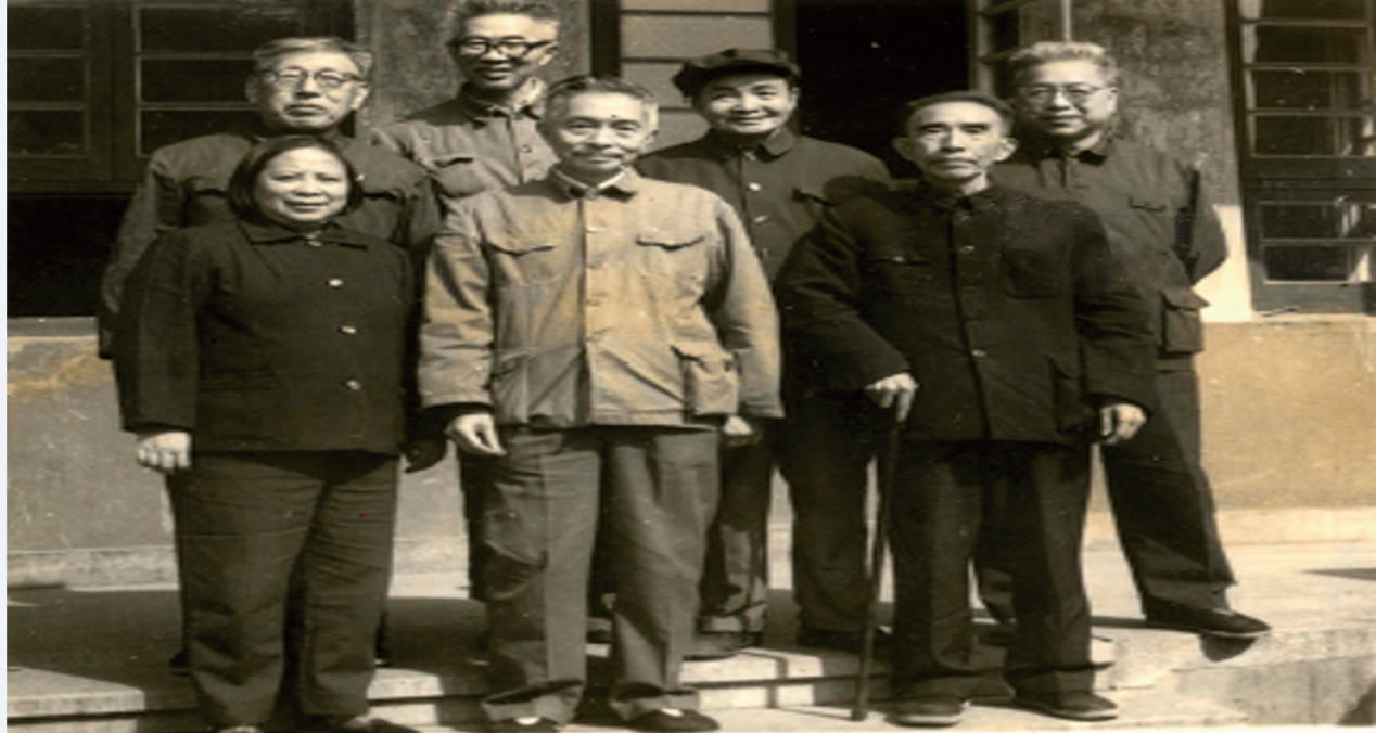 (南京工公司食品工业系前辈:前排:傅健生、沈学源、黄本立;后排左二起:檀耀辉、朱宝镛、陈舜祖,1958)