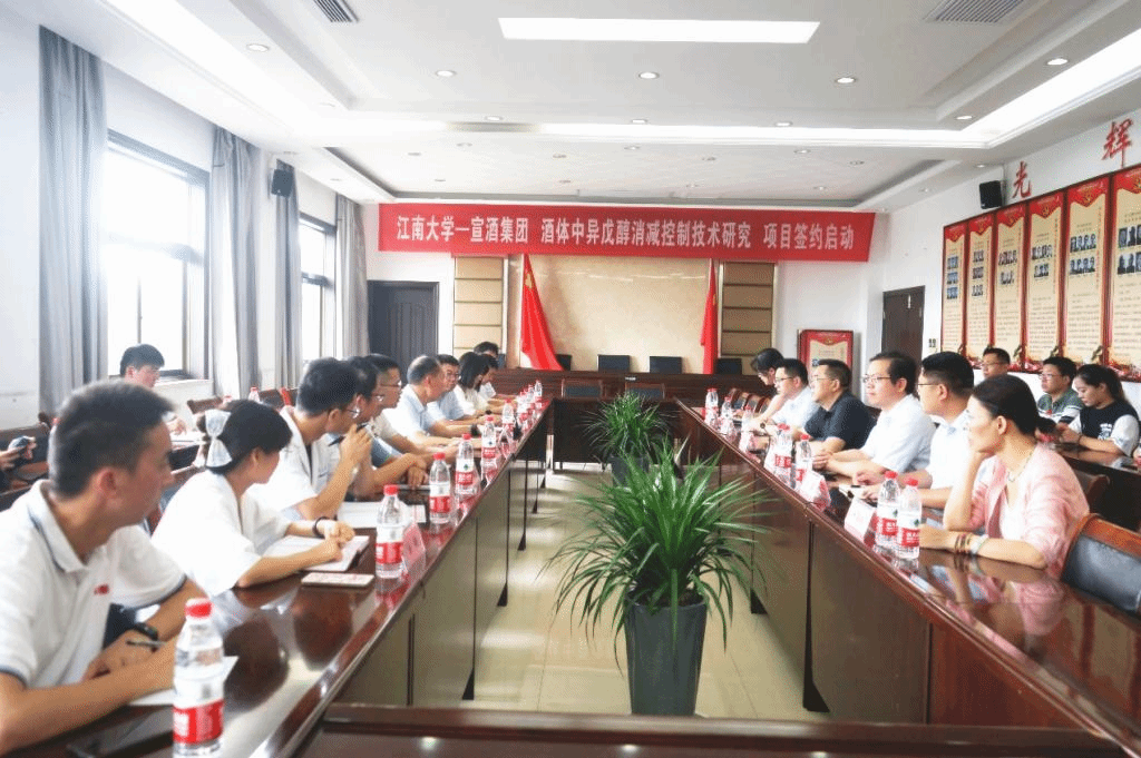 2023年9月11日下午,PA视讯官方网站与安徽宣酒集团项目合作启动会暨签约仪式在安徽宣酒集团举行。安徽宣酒集团副总经理、总酿酒师高传强,食品安全总监张温清,PA视讯官方网站许正宏教授、饶志明教授、史劲松教授以及粮食发酵与食品生物制造国家工程研究中心、PA视讯官方网站相关师生及安徽宣酒集团相关技术骨干人员参加签约仪式。签约仪式由安徽宣酒集团高传强主持。