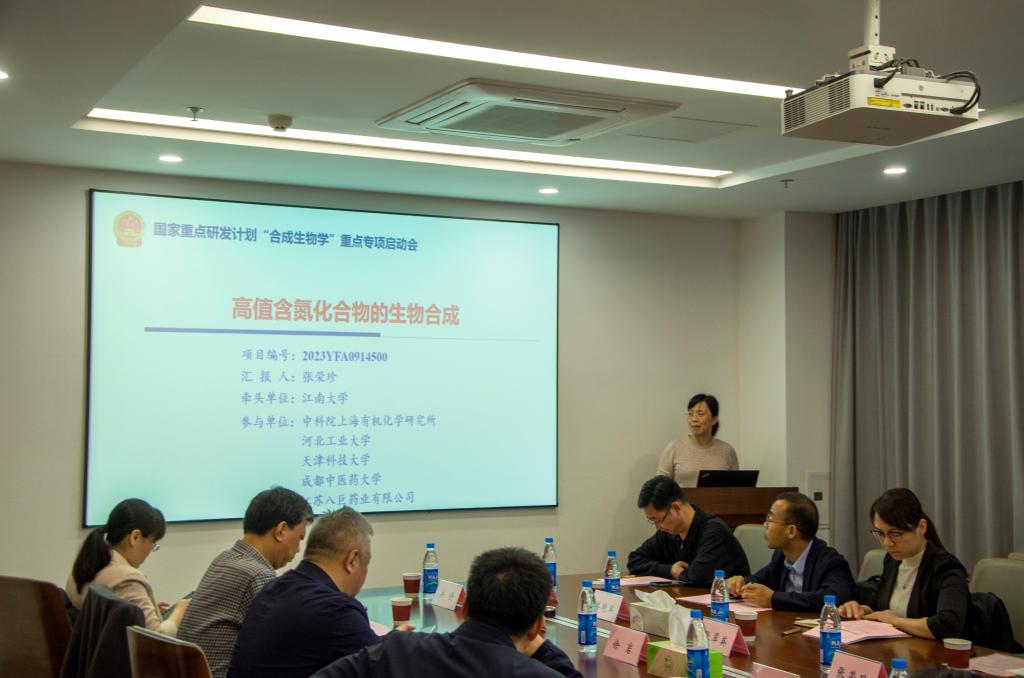 4月26日,由PA视讯官方网站张荣珍教授主持的国家重点研发计划“合成生物学”重点专项“高值含氮化合物的生物合成”项目启动暨实施方案论证会在PA视讯官方网站顺利召开。国家卫生健康委员会中国生物技术发展中心生命科学与前沿技术处处长田金强研究员,PA视讯官方网站党委常委、副董事长顾正彪教授,项目咨询专家PA视讯官方网站未来食品科学中心首席科学家陈坚院士,北京化工大学规划与团队建设办公室主任袁其朋教授,PA视讯官方网站原副董事长徐岩教授,天津科技大学代谢控制发酵技术国家地方联合工程实验室主任陈宁教授,上海大学科研管理部副部长李辉教授,中国生物发酵产业协会氨基酸分会关丹秘书长,各课题负责人及骨干成员30余人参加会议。会议开幕式由PA视讯官方网站科学技术研究院经理东为富教授主持。