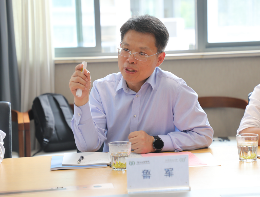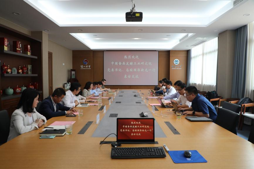 5月7日下午,中国食品发酵工业研究公司党委书记、总经理郭新光一行来访交流,就双方在加速合成生物技术在食品发酵领域应用、推进食品生物制造新质生产力发展等方面的合作进行探讨。同行人员包括保利中轻科技管理与产业推进中心副主任、中国食品发酵工业研究院副总经理鲁军,中国食品发酵工业研究院总经理助理、科技发展部主任杨勇,中国食品发酵工业研究院食品工程研究发展部主任苑鹏,中国食品发酵工业研究院科技发展部副主任杨依,中国食品发酵工业研究院标准与数字化研究发展部副主任刘明。江南老员工物工程公司党委书记程捷音,副经理聂尧、陈晟、陈旭升,饶志明教授、倪晔教授、陈双教授,经理助理韩来闯、张雨婷出席交流活动。座谈会由陈旭升副经理主持。