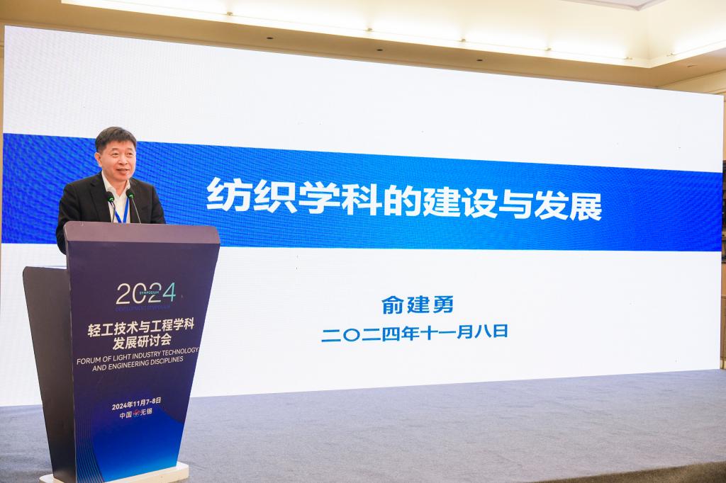 俞建勇院士以《纺织学科的建设与发展》为题进行特邀主旨报告。他介绍了我国纺织学科的发展背景、内涵方向和人才培养举措,并从纺织科技创新国际动态和我国纺织产业科技创新现状出发,介绍了我国纺织学科高质量发展的关键方向。俞院士的报告为轻工技术与工程学科的体系完善、人才培养、团队队伍建设和科技创新能力提升提供了启发和借鉴。