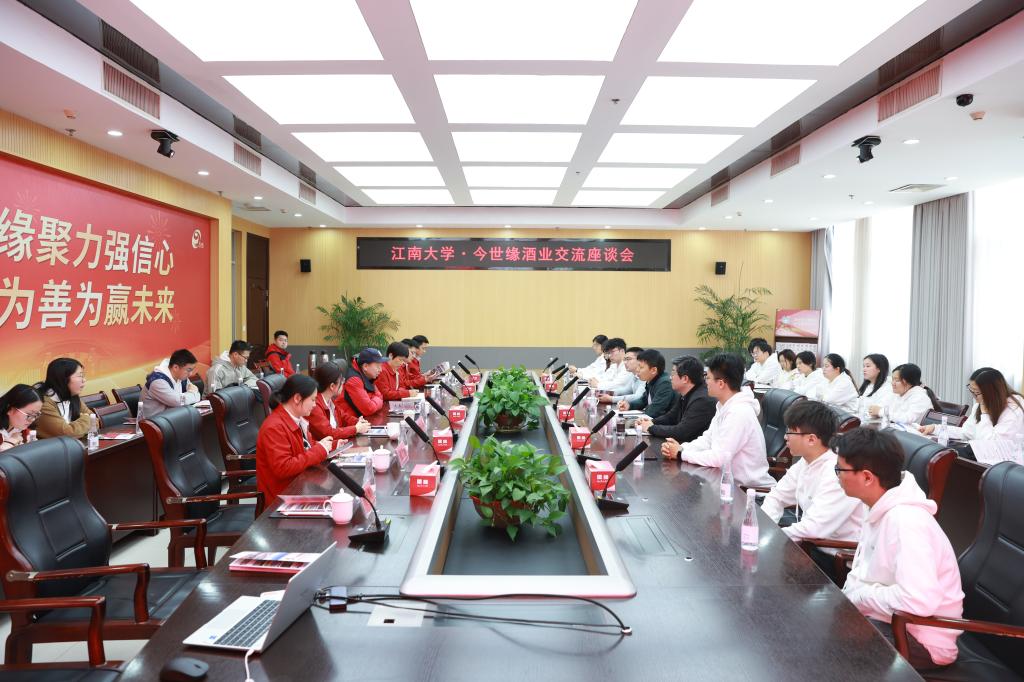 座谈会上,吴建峰结合白酒行业当前发展现状,详细介绍了今世缘不断“传承”与“创新”的发展情况。作为公司杰出员工,他还向来访师生介绍自己三十七年前与高沟酒厂(今世缘酒业前身)结缘,坚持扎根白酒行业,见证公司不断发展的经历。