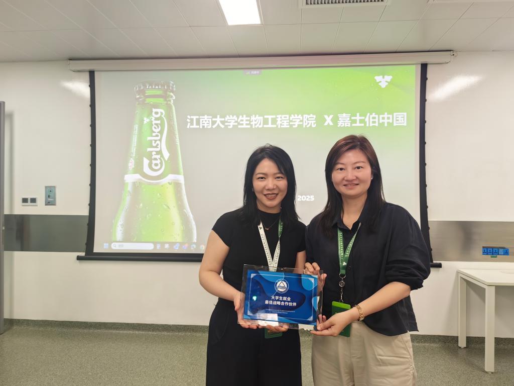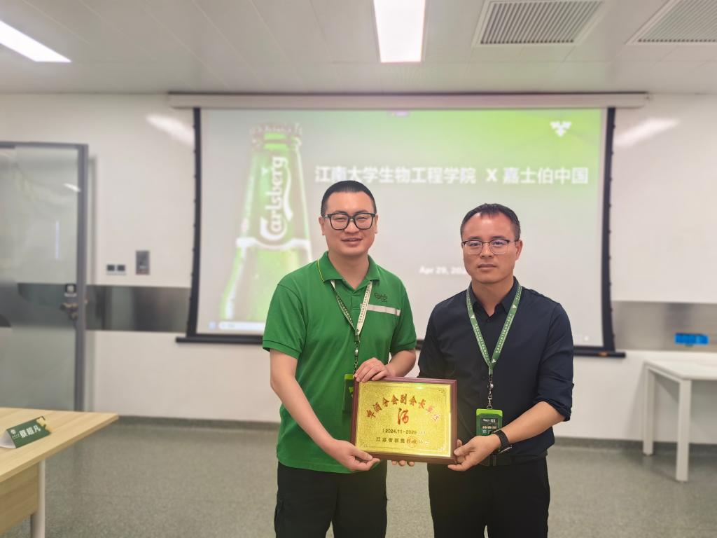 座谈交流环节,校企双方围绕员工就业、实习实践等主题展开深入交流。崔彦坤特别介绍了嘉士伯集团近180年的辉煌历史,阐释了嘉士伯“酿造美好的现在和未来”的愿景,他还特别介绍了嘉士伯深厚的中国情缘及其中国供应链体系的运作模式。贾舒博通过“文化、开放、发展”三个关键词,全面剖析了嘉士伯独特的企业文化,并通过具体案例展示公司“酿造无限可能”的人才发展计划,包括培训体系、晋升通道、轮岗机制和实施成效。公司员工宋伟旭厂长介绍了天目湖酒厂从创立到发展的奋斗历程,以及本厂在技术创新、品质管控、市场拓展等方面取得的突出成绩。2024年入职公司的公司员工任涛和贺逸菲也分享了他们从校园到职场的蜕变历程,两位学长学姐的现身说法,对在场同学的职业生涯规划也带来深刻启发。