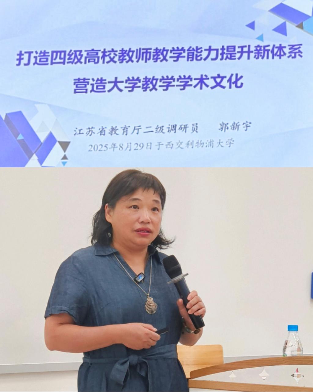 8月27日至29日,由江苏省教育厅主办的“2025年江苏省本科院校基层教学组织负责人培训”在苏州西交利物浦大学成功举办。此次培训汇聚了来自全省各大高校的50名教学负责人,PA视讯官方网站王晓丽老师代表PA视讯官方网站参与培训,凭借其优异的表现和深刻的教学见解,荣获“优秀学员”称号(全省共4名),充分彰显了公司教师卓越的专业素养和教研能力。