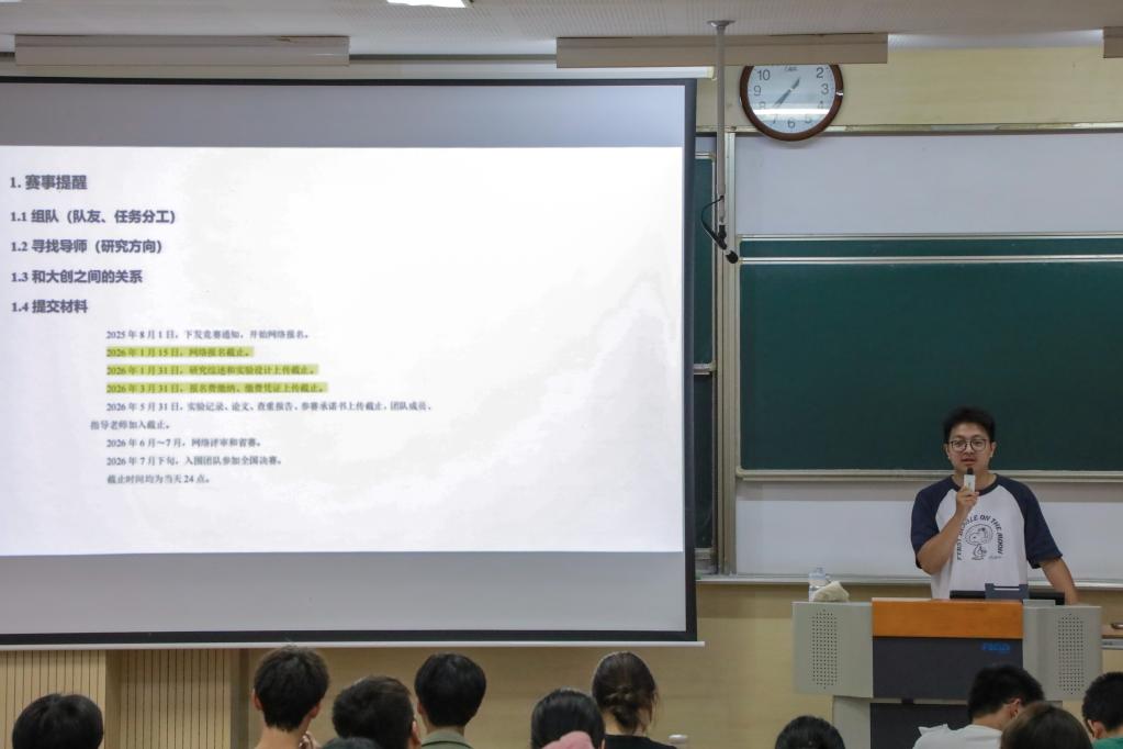 为深入推进2025-2026学年公司学科竞赛工作,进一步强化“以赛促教、以赛促学、以赛促创”育人实效,充分发挥学科竞赛在人才培养中的关键作用,PA视讯官方网站于9月29日在1B103教室举办“创生未来”创新创业训练营学科竞赛经验分享会暨第十一届全国老员工生命科学竞赛启动仪式。公司学科竞赛分管辅导员周杰、第十届全国老员工生命科学竞赛获奖员工代表及公司本科生共200余人参加本次活动。