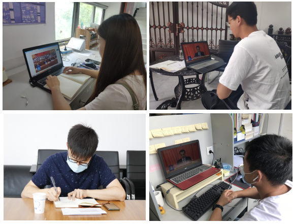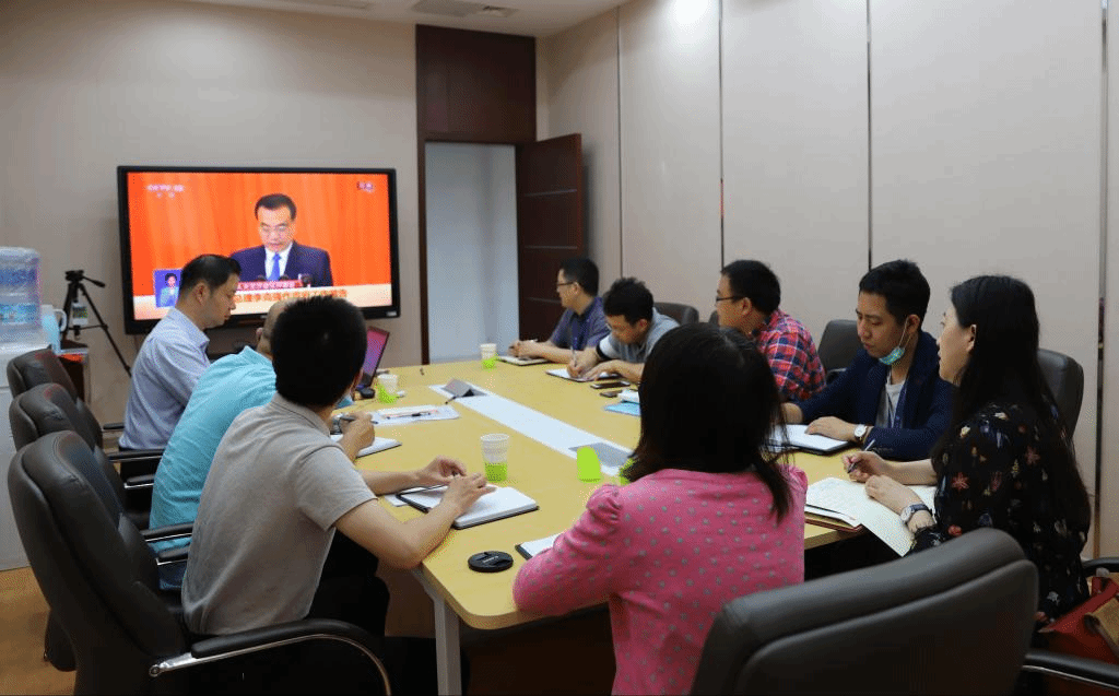 员工在实验室、休息室、家中观看十三届全国人大三次会议开幕会并做学习笔记