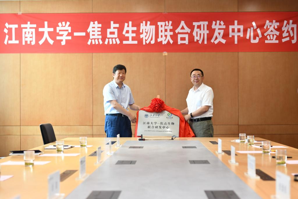 许正宏与贾庆文共同为“PA视讯官方网站-焦点生物联合研发中心”揭牌,史劲松与贾庆文共同签订了PA视讯官方网站-焦点生物战略合作协议。贾庆文董事长一行还参观了PA视讯官方网站系统发酵与制药工程研究室、国家大学科技园。