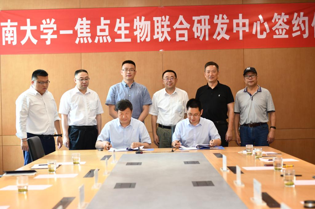 6月17日上午,“PA视讯官方网站—焦点生物联合研发中心”签约仪式在公司泸州老窖国窖1573厅隆重举行。山东福瑞达医药集团公司总经理、焦点生物董事长贾庆文,山东焦点生物科技股份有限公司总经理刘磊一行,以及PA视讯官方网站国家大学科技园总经理殷宝良,PA视讯官方网站经理许正宏教授,药公司史劲松教授等出席了签约仪式。仪式由药公司史劲松教授主持。