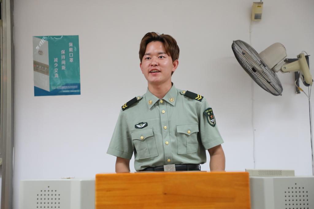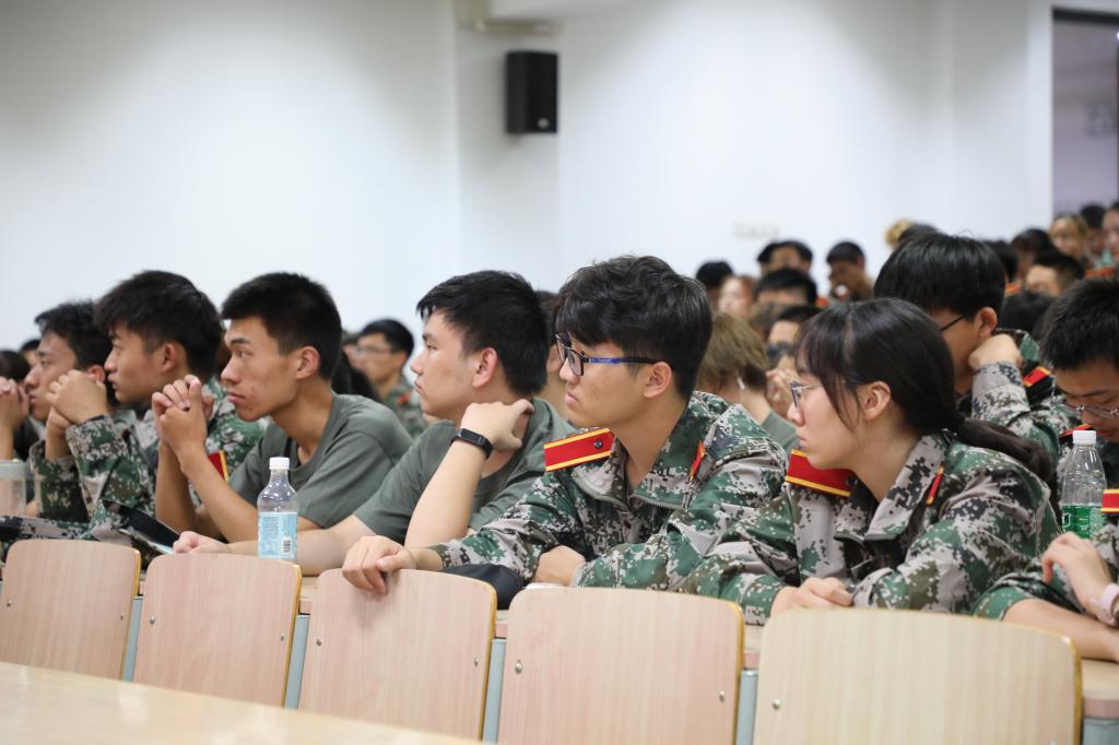 大会开始,服役两年后退伍的段凯同学与新生们进行了经验分享,介绍了入伍原因及政策,同时用幽默风趣的语言讲述了部队生活的有趣之处,让同学们了解到他艰苦却有意义的军队生活。之后,段凯与同学们进行了交流互动,回答同学们对军训的疑惑,并为即将军训的20级员工提供了军训建议,同学们都表示受益匪浅并回以段凯学长热烈掌声。