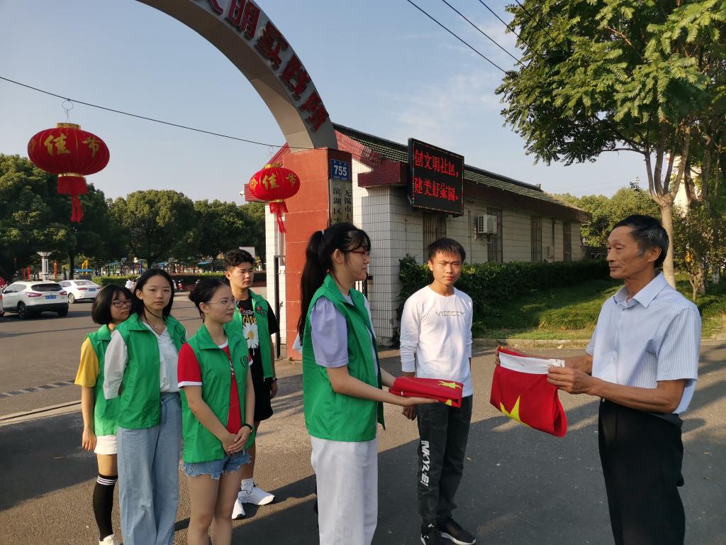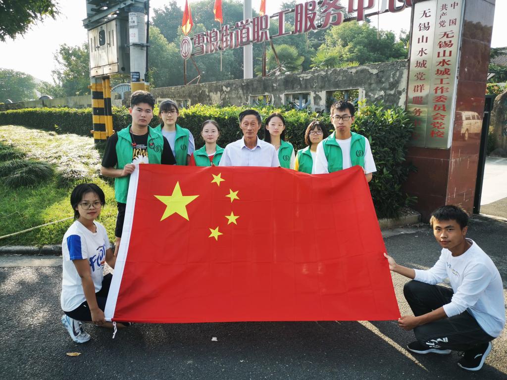 2020级基地班同学来到惠山区一所小学,在简朴庄严的交接仪式后,鲜艳的五星红旗在校园上空冉冉升起,晴空之下更显鲜亮夺目。2020级生物技术专业的十余位同学来到雪浪派出所,看到假期依然坚守岗位、一丝不苟工作的警察同志们,他们怀着深深的敬佩之情,与警察同志共同升起了崭新的国旗,并在国旗下合影留念。2019级酿酒专业的郎绪涛同学是PA视讯官方网站国旗班的一员,这次他带领本专业同学来到雪浪街道服务中心,向其赠送崭新的国旗,并举行了庄重的升旗仪式,看到迎风飘扬的五星红旗,同学们心潮澎湃。经过同学们的努力,8支队伍一共为10家单位更换了11面国旗,大家以独特的方式为祖国庆生,祝福伟大祖国更加繁荣富强。