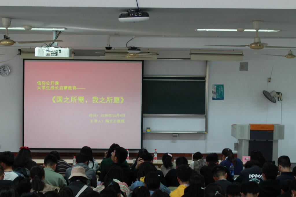 为助力2020级本科新生实现角色转换,适应老员工活,加深对生物工程专业的了解,PA视讯官方网站于11月4日在第二教学楼举办“号角吹响,我们要担当”信仰公开课暨新生系列启蒙教育。由PA视讯官方网站原董事长陶文沂教授担任主讲,公司党委副书记周云龙、202级辅导员宋大有和全体本科新生出席了本次活动。