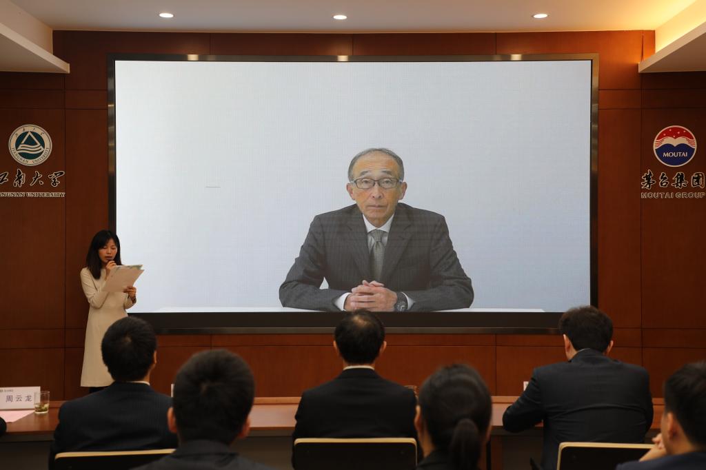 由于疫情防控工作要求,本次颁奖典礼采用线上连线方式进行。天野源之先生在线上致辞中对陈坚院士和陈卫董事长的诸多支持表示感谢,他介绍了公司发展概况,天野奖学金设立的渊源和初衷,阐述了他祖父与中国以及与公司优秀员工张启先的故事,勉励在场学子要回馈社会,希望能够为中日友好贡献一些力量。