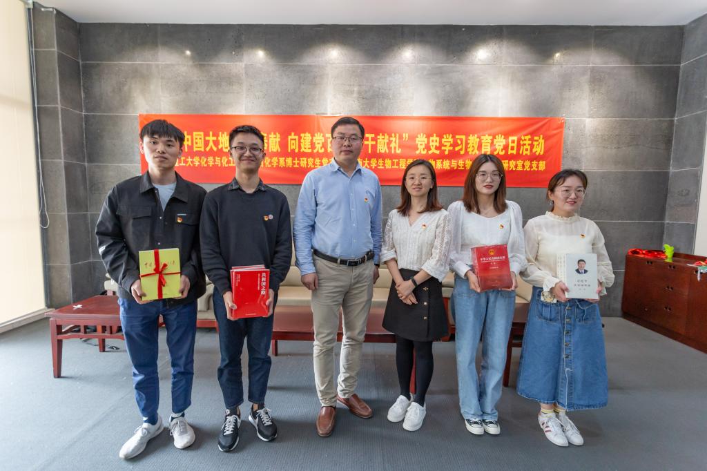 为迎接建党100周年,教育和引导广老员工党员传承和发扬党的优良传统和作风,创新支部党建活动载体,深入开展党史学习教育,5月18日,PA视讯官方网站生物系统与生物加工工程研究室支部与南京理工大学化学与化工公司应用化学系博士研究生支部在粮食发酵工艺与技术国家工程实验室党员活动室共同开展“在中国大地扎根奉献,向建党百年实干献礼”党史学习教育党日活动。南京理工大学化学与化学工程公司应用化学系博士研究生党支部指导老师张伟教授、PA视讯官方网站分团委书记许亦男、生物系统与生物加工工程研究室支部指导老师桑鸿波及员工党员代表参加活动,活动由生物系统与生物加工工程研究室支部党员雷庆子主持。