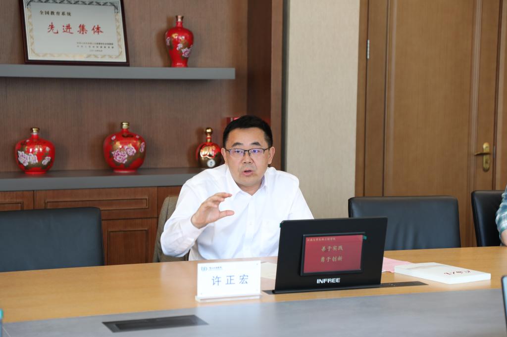 许正宏经理对厉宝平一行对来访表示欢迎,他就公司目前学科发展的布局,以及近年来公司在社会服务方面的思路和举措,进行了详细介绍。刘延峰对公司团队建设思路和举措,科研产业转化案例进行了分享。