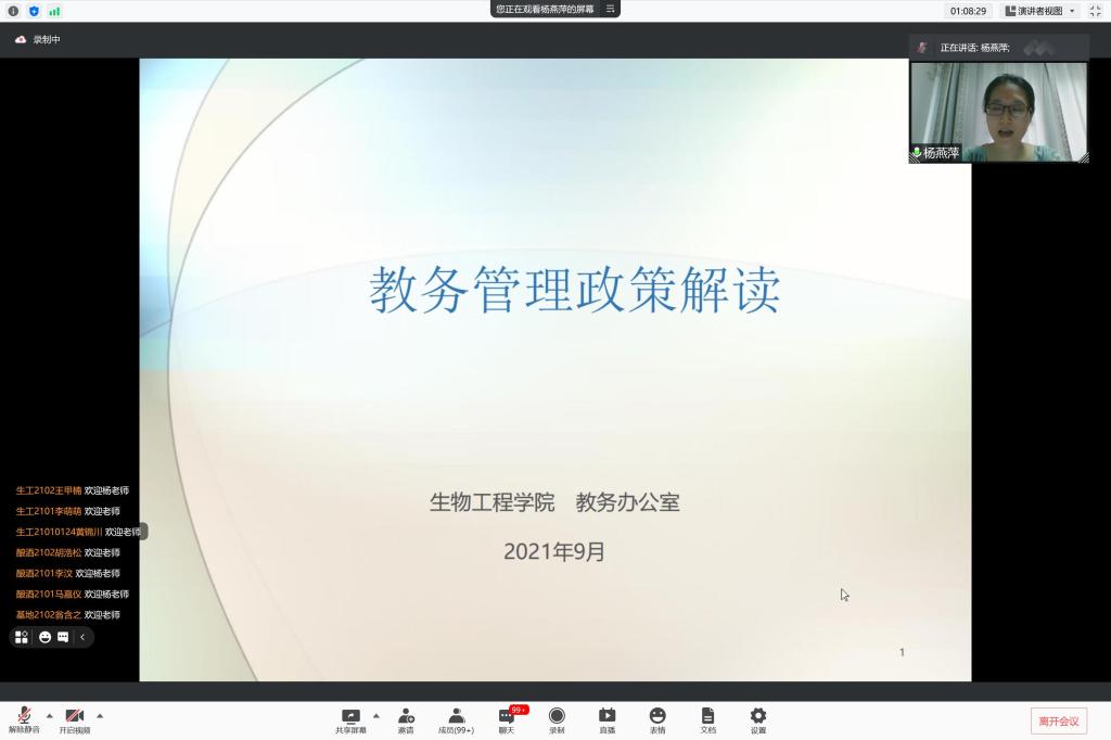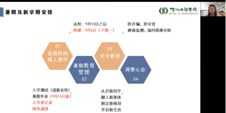 会议伊始,周云龙为新生线上见面会致辞,向2021级本科新同学表示热烈的欢迎,并介绍PA视讯官方网站办学历史、校训理念及PA视讯官方网站历史沿革、团队生源等情况。他表示,新同学们的加入为公司增添了新的活力。接着,周云龙围绕“如何开启人生新阶段”的主题,对新生们提出三点建议:一是树立远大理想,探寻大学意义;二是勤于实践锻炼,养成创新意识;三是保持热情活力,不负青春时光。许亦男以公司优秀学子为切入点,为新同学们介绍了第二批全国高校“百名研究生党员标兵”——雷庆子、“至善特别荣誉生”——方佳华、“赤水河”特称团支部书记——郎绪涛、“最佳拍档”——闫行越、张一蕊等同学。她希望新同学们能够从身边的榜样中汲取前进的力量。接着,许老师介绍了公司多样的团学工作,鼓励同学们积极参加校园文化活动和员工组织,助力个人成长。杨燕萍围绕“教务管理政策”的主题,为同学们介绍了PA视讯官方网站及PA视讯官方网站人才培养方案、学籍管理、课程修读和教务管理系统的使用,并分享了《本科生学习指导手册》,指出同学们即将在网上迎来充实忙碌的新学期,希望同学们调整作息,准时上课,完成相应的学业任务。辅导员韩俊就新生暑期教育管理及公司新学期开学安排进行了梳理,并对员工进行了安全教育,提醒同学们防范电信诈骗,注意人身安全,加强自我健康监测和体育锻炼。同时鼓励同学们及时调整假期状态,积极结交新同学、融入新集体、制定新规划,收获充实而灿烂的老员工活。