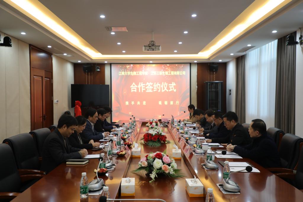 11月25日,江南老员工物工程公司党委书记王维、经理许正宏一行赴江苏三联生物工程股份有限公司进行考察交流并举行合作签约仪式。无锡空港经济开发区党工委书记陈伟良、江苏三联生物工程股份有限公司董事长施启尧等领导共同参加签约仪式,活动由江苏三联生物工程股份有限公司人事负责人冯燕主持。