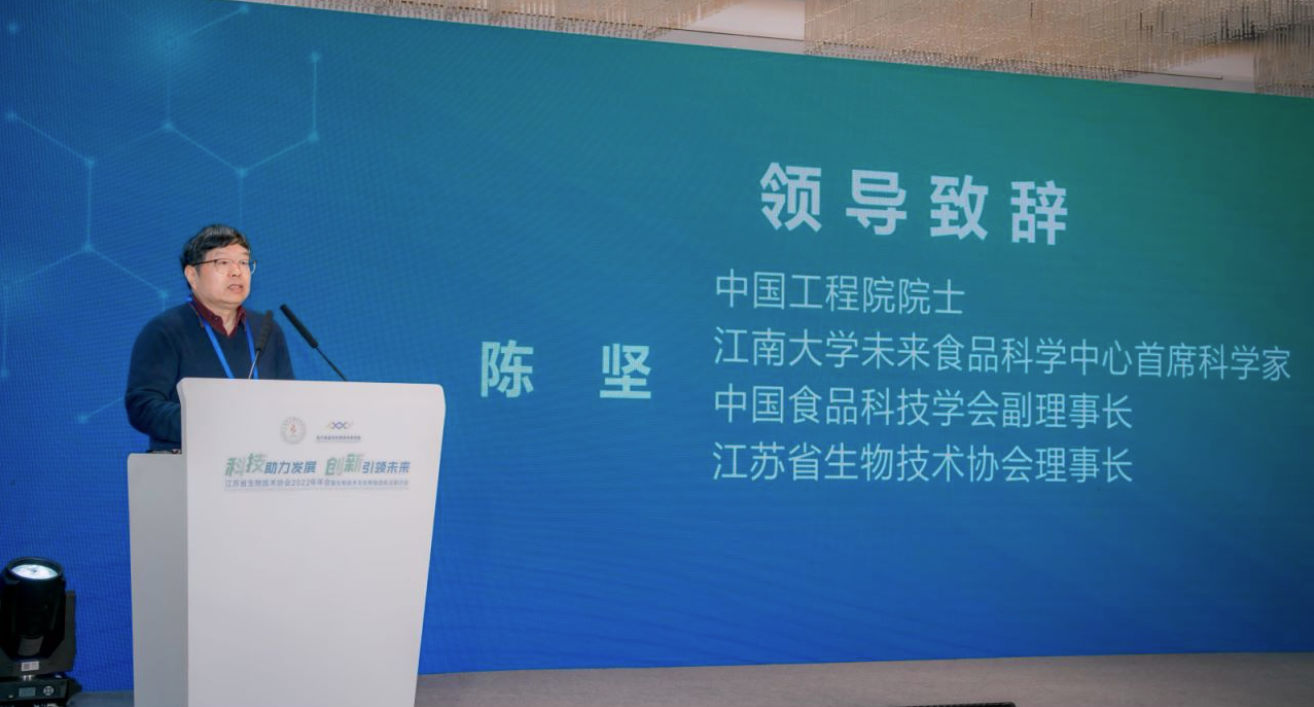大会由江苏省生物技术协会副理事长兼秘书长李敏主持,陈坚院士、堵国成副董事长、虞仁军常委分别致辞。